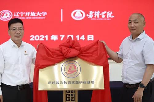 李冬青、陈锡德分别代表辽宁开放大学、辽宁装备制造职业技术学院、雷锋学院签署了《战略合作计划书》,共同为辽宁开放大学、辽宁装备制造职业技术学院思想政治教育实践研修基地揭牌,标志着我校思想政治教育实践研修基地正式落户雷锋学院。