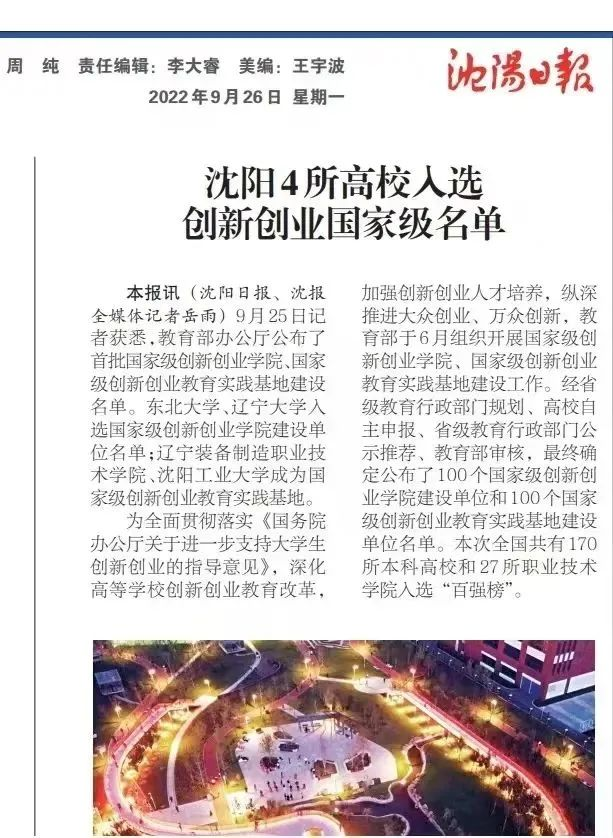 日前,辽宁开放大学(辽宁装备制造职业技术学院)入选首批国家级创新创业教育实践基地,这是我校聚力创新创业工作新征程取得的又一丰硕成果,也为辽宁省高校创新创业工作打造了一张靓丽的新名片。