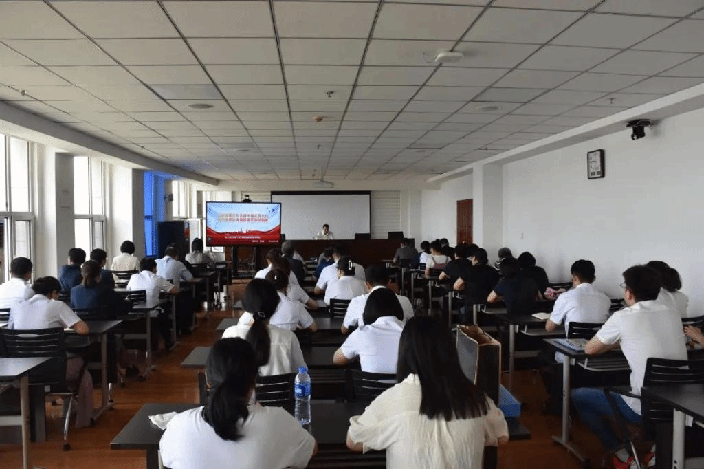 6月30日,党委书记伊焕斌以“以教育现代化支撑中国式现代化 谱好高等教育高质量发展新篇章”为题,为师生代表们讲授了一堂精彩的主题教育专题党课。省委主题教育指导组成员赵元列席党课。