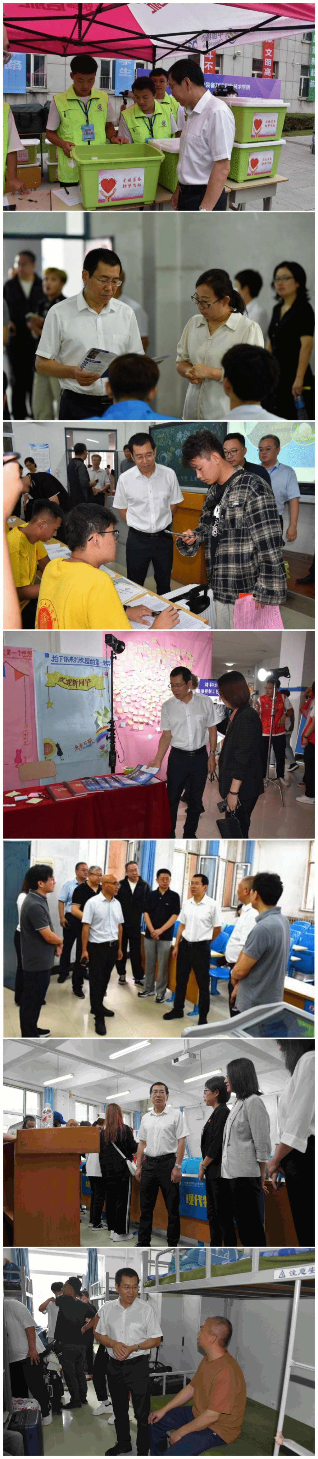 9月9日清晨,学校党委书记伊焕斌,党委副书记任庆国,副校长吴厚兴、李冬青、冯继光,校长助理刘祚斌、赵国军以及相关部门负责人现场督导学生报到工作。伊焕斌一行深入各学院迎新接待点、志愿者服务站、绿色通道等处,了解现场服务保障情况,慰问工作人员和志愿者,每到一处都驻足仔细询问,指导迎新工作,及时解决问题,确保新生报到各项工作保障到位。校领导为开启大学生活的新同学送上祝福,寄语同学们志存高远,不负韶华,成长成才。
