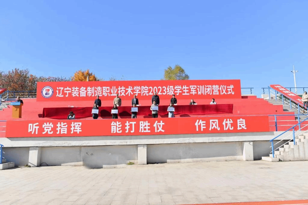 2023年10月20日,我校2023级学生军训闭营仪式在体育场隆重举行,校长任庆国,副校长、校武装部部长冯继光出席闭营仪式,高职各学院党总支书记、学生工作副院长、学工办主任,全体新生辅导员和中国人民解放军某部队全体驻训教官及2023级全体学生参加仪式,闭营仪式由学生工作处处长主持。
