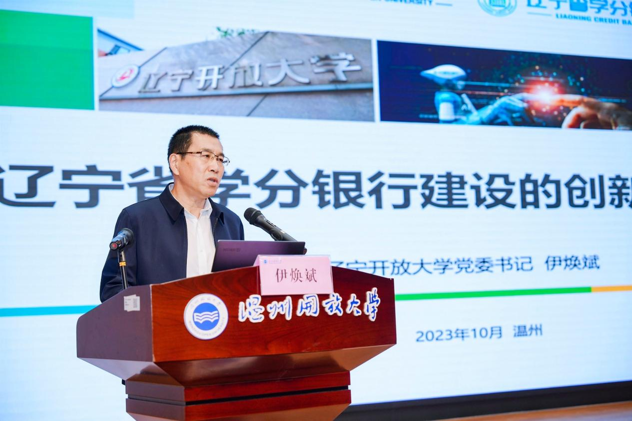 伊焕斌作“辽宁省学分银行建设的创新路径与实践”专题发言,介绍我校开展辽宁省学分银行建设的总体情况,围绕“三个聚焦”即聚焦“‘书证融通’,开发学分银行应用场景”,聚焦“‘内涵建设’自主开发建设学习成果认证标准体系”,聚焦“‘数字建设’提升学分银行运行效能”三个方面分享辽宁经验。