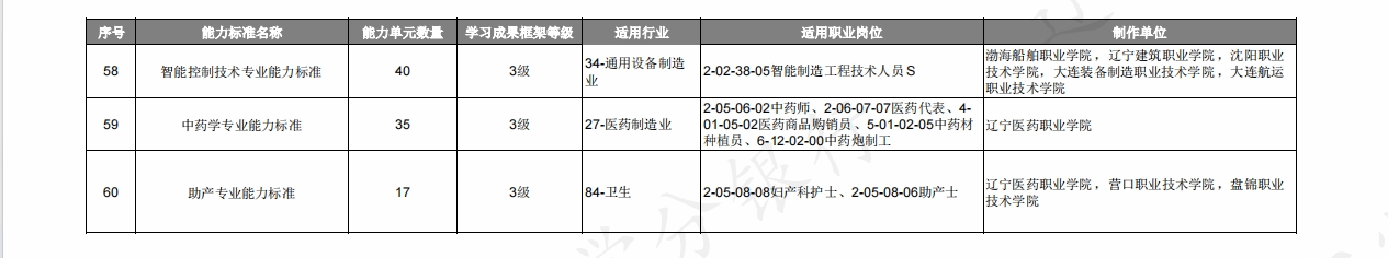 为贯彻落实党的二十届三中全会精神,加快构建职普融通、产教融合的职业教育体系,推动职业教育与区域发展相协调、与产业布局相衔接,辽宁省学分银行对照我省4个万亿级产业基地和22个重点产业集群的人才培养需求,组织推进职业教育专业能力图谱建设,推动产教融合人才培养综合改革。能力图谱建设以促进技术技能人才岗位胜任能力培养为导向,遵循国家专业教学标准、职业标准、行业标准,按照学习成果认定规范,制定能力单元,形成专业岗位胜任能力标准,对应调整专业人才培养方案,融入课程标准,评价学生岗位能力达成情况。经专业团队制作、专家论证审核、学分银行规范化校验,制定60个专业的能力标准、3636个能力单元,覆盖269个职业岗位,对标适应辽宁省 12 个重点产业集群的技能人才能力需求,并编制《辽宁省学分银行职业教育专业能力标准名录(2024年9月版)》,现予以发布。